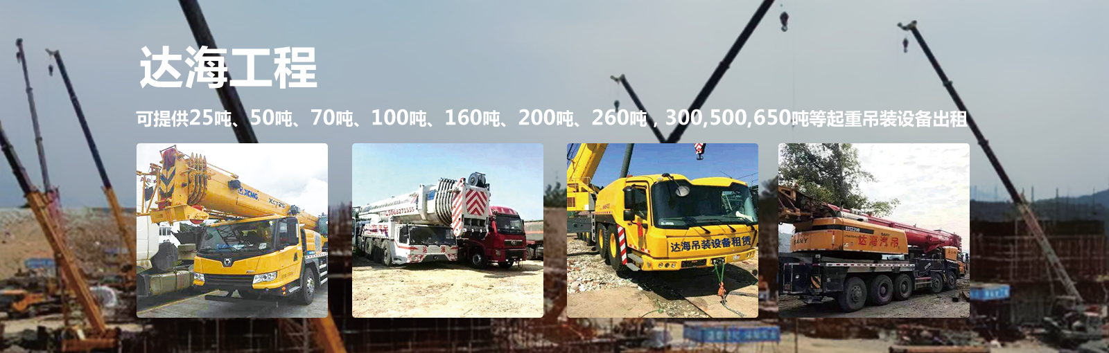 溫州市達海工程設備租賃有限公司,是一家以吊車租賃為主的現代化企業,紀律嚴明、作風硬朗、設備精良、技術力量雄厚、能承接各種大型機械、建筑橋 梁、高層設備的吊運安裝業務,尤其擅長對超寬等特種大型設備的吊裝,是一支專業化、規范化的吊車服務隊伍。 公司一向奉行“服務于顧客,取信于顧客”的宗旨,強化企業管理,積極推行現代管理方法,嚴格按照先進標準實施中心所承擔的施工工程。